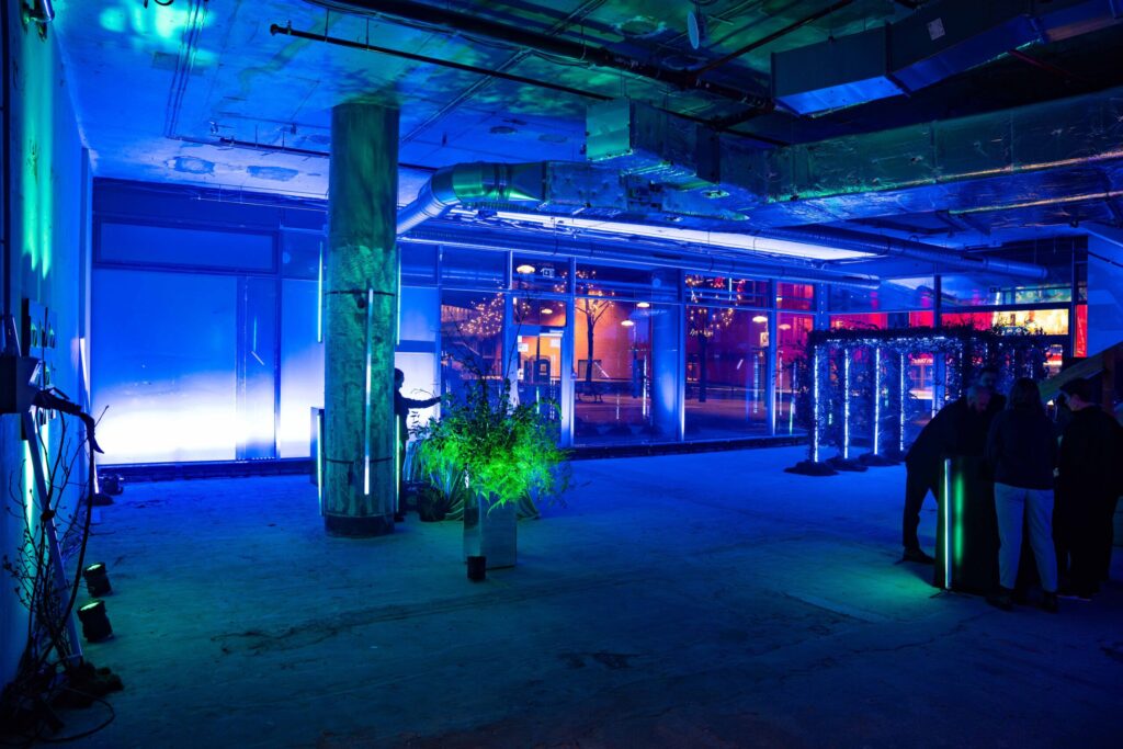 Gestalterisch inszenierten wir eine Berliner Clubatmosphäre: Licht-, Spiegel- und Pflanzeninstallationen griffen Referenzen aus der lokalen Clubszene auf – roh, reduziert, bewusst kontrastreich. Der industrielle Charakter der Fläche blieb sichtbar und wurde gezielt in Szene gesetzt, statt überdeckt. Ziel des Events war es, die Venue als wandelbaren, hochattraktiven Ort für zukünftige Gastronomiekonzepte zu präsentieren, zugleich Industry-Insights zu vermitteln und eine starke emotionale Verbindung zum Raum zu schaffen. Ein kleines Team, große Ambitionen – und ein Ergebnis, das überzeugt hat. Ein glücklicher Kunde und das erste Highlight des Jahres im Januar 2026 bereits gesetzt.